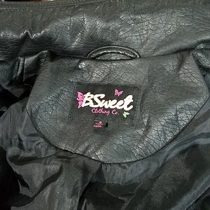 This black vegan jacket is made by B sweet clothing company no rips or stains or snags, working zipper super cute essential for every closet this is a throw on with anything kind of faux leather jacket, every girl needs a black bomber jacket as an essential in their closet🌺