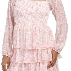 JUNIORS Paisley Floral Square Neck Ruffle Dress Large