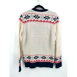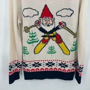 JUNK FOOD Men's Cream Blue Red Gnome Knit Ugly Christmas Sweater Size Medium
