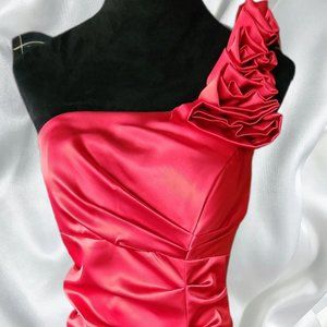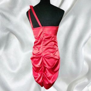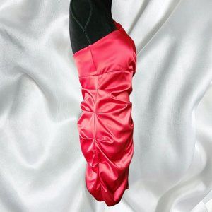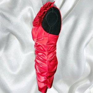 Sexy Red Satin look Ruched Fire Engine Red Coctail dress. Wear for Christmas or a special event. Zips up in back.