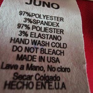 Material is 97% polyester and 3% spandex. Juno does an excellent job at creating elegant dresses. In NEW Condition. Never Worn.