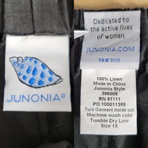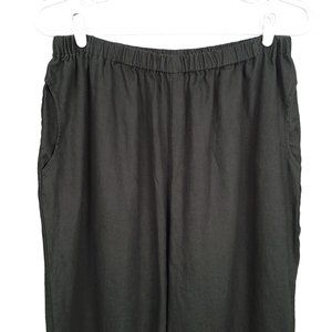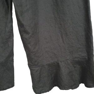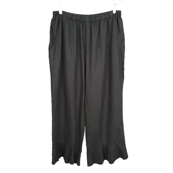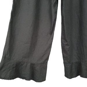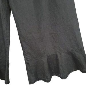 JUNONIA Women's Pants Size 1X Gray Linen Pull On Wide Leg Pockets Ruffle Hem