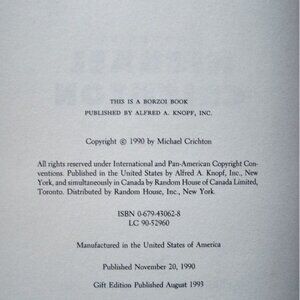 JURASSIC PARK by Michael Crichton Knoff Publisher Signed Gift Edition 1993 Book