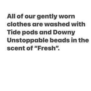 We use Tide pods and Downy Unstoppable beads in the scent of fresh.