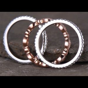 SET OF 3 SILVER & ROSE GOLD WITH CRYSTAL CZ STONES.