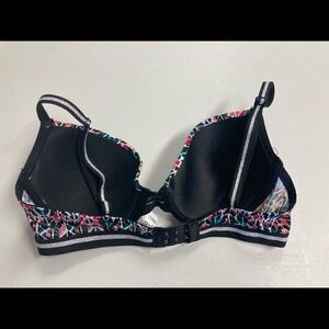 JUST BE, Women’s Geometric Bra, 34B, Black, Green, Peach, Pink, Silver.
