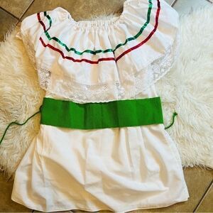 Tags: Mexican party fiestas patrias blouse belt traditional 5 de mayo red white green flag ruffled Mexican fiesta themed party 15 of September Mexican independence day Día de la independencia de México white red green blouse tradicional traditional