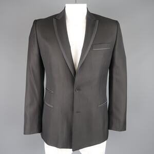 JUST CAVALLI 42 Black Wool Blend Satin Piping Peak Lapel Sport Coat Jacket