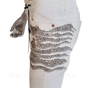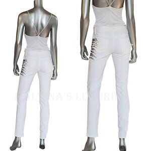 JUST CAVALLI BY ROBERTO CAVALLI JEANS WHITE w CRYSTALS SKINNY PANTS sz 29 US 6