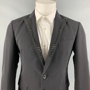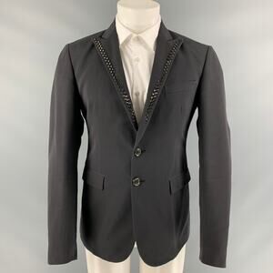 JUST CAVALLI Size 38 Black Studded Cotton Peak Lapel Sport Coat