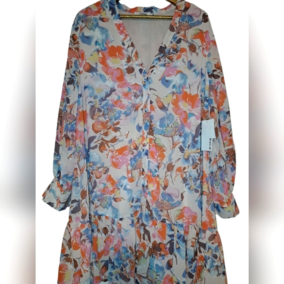 JUST FAB NWT 2XL Boho floral long sleeve dress