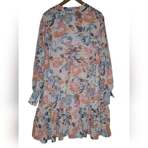 Beautiful flowy JUST FAB Boho floral long sleeve button down dress