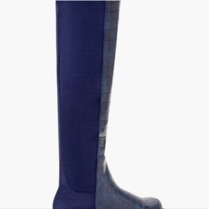 LIKE NEW BLUE CROC PRINT JUST FAB TINSLEY FLAT BOOTS SIZE 6.