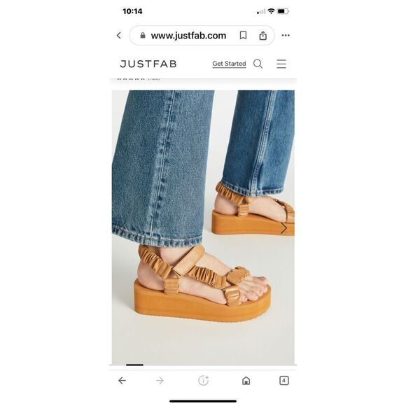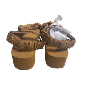JUST FAB Taneisa Women’s Rusched Strap Wedge Sandal Size 9 Tan