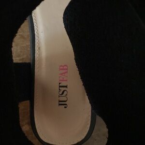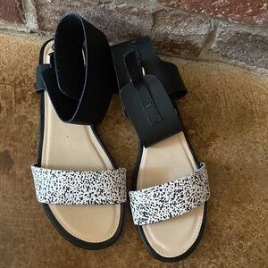 Just Fab black and animal print gladiator sandals. Size 8.5 ankle buckle, see pictures for details.
