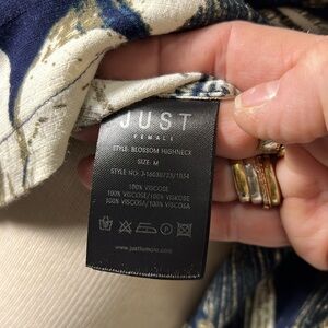 JUST Female Floral Blossom Print Long Sleeve Mochneck Blouse Size M