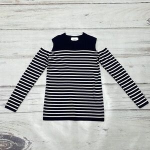 JUST Female Sweater Cold Shoulder Blue White Stripes Size Large