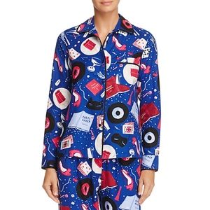- Brand new with tag - 100% polyester - notch collar - long sleeves - elastic waistband - relaxed sleepwear - size s measures 26" long from highest shoulder point - Inseam (size s): 29" - machine wash cold with like colors