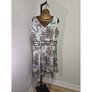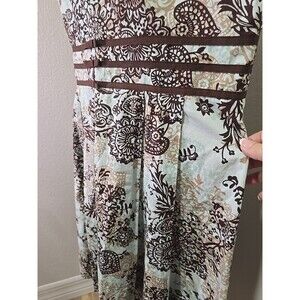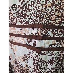 JUST IN THYME Fit Flare Dress Womens 16 Petite Plus Blue Chocolate Brown Paisley