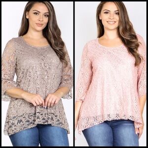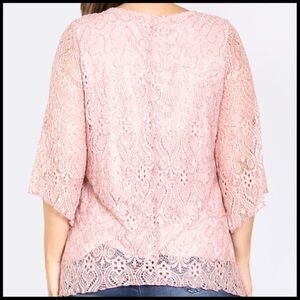 Plus size 3/4 sleeve scoop neck sequined lace top.