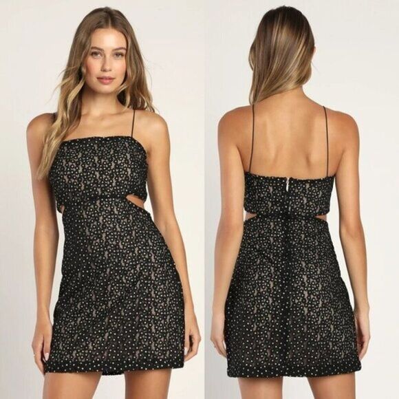 Just me by Lulu's Women Black Floral Embroidered Cutout Mini Dress