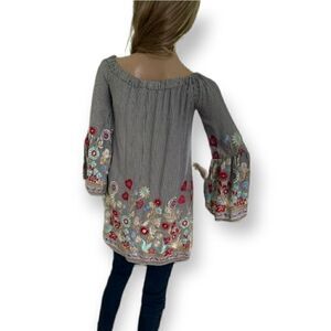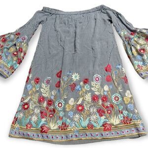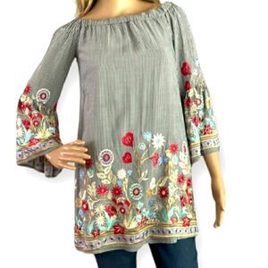 🔥 JUST ME RICH FLOWER EMBROIDERY OFF SHOULDER 3/4 SLEEVE TUNIC TOP BLOUSE SHIRT