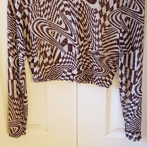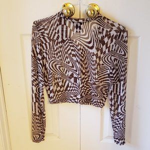 JUST POLY NEW YORK transparent blouse designed in the years of the hippies, long sleeves and short to the belly button and design, long sleeves