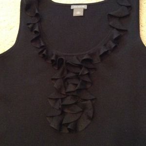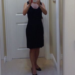 Lovely black dress with ruffled detailing. Worn once so in like-new condition. Made of 76% silk and 24% nylon in a good weight knit fabric perfect for fall and winter.