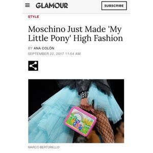 Black Moschino My Little Pony T-shirt NWT Women’s Size M. The 80’s childhood favorite was remixed for luxury fashion in Moschino’s SS18 collection designed by Jeremy Scott. Crafted from a black cotton fabric, cut with a regular fit and features short sleeves with slight drop shoulders, crew neckline and multi-colored - My Little Pony - graphic on the front. 100% cotton. The My Little Pony capsule collection is and was alwaysRARE. Redacted receipt in listing pics.