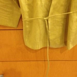 ✨REDUCED 40%!✨Yellow and green striped blouse. 3/4 sleeves with small slits at the elbows. Ties at the waste. No buttons or zippers. Made of viscose & hemp.