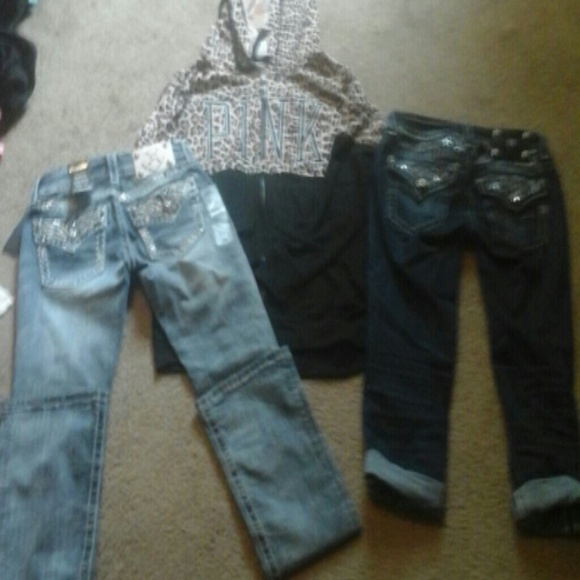 Just sharing my new vs cheetah hoodie :) n my 2 new pair of Miss Mes :) between my bf n I, im def $ spoiled lol ;) clothes r def my addiction, specially vs pink n miss me!