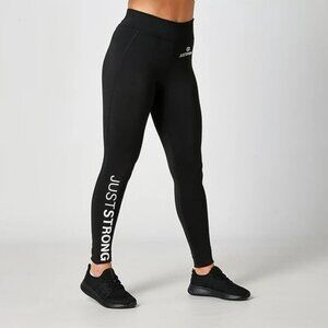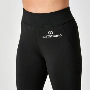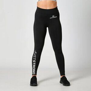 JUST STRONG Jet Black Leggings Sz L High waisted squat proof wicking UPF 30+