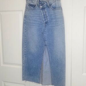 Just USA Light washed long denim skirt. Asymmetrical zipper.