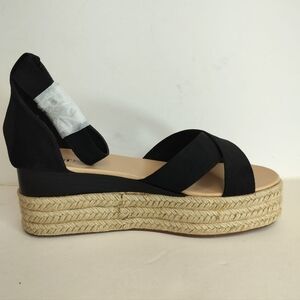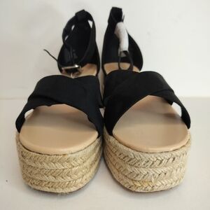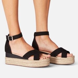 JUSTFAB Corinna Espadrille Black Flatform Wedges Sandals Faux Suede Strappy