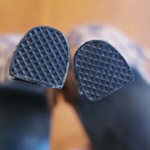 Peep toe, ankle strap. Black and brown animal print on tan faux suede background. Gold buckle. 5.5" heel (including 1.5" platform to make it easier to walk gracefully ;) Excellent condition. These look as if they've never been walked on anything but carpet.