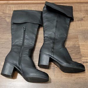 JUSTFAB Lewan women's over the knee beautiful black vegan lea boots. Sz: 7.5