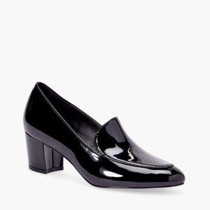 These JustFab Moore Classic Loafer Pumps in Black Patent Leather are in Excellent Shape - only worn 2x (no major flaws just mild scuffing to a couple of areas - see pics). A comfortable, stylish loafer that will add just the right touch to your slacks, suit, jeans, etc. The feature Form Foam - twice the thickness of a standard foam insole, with optimal rebound so the sole never flattens and you always feel supported. Size - 8. Approx. Measurements: 2.5" - Platform, 2" - Block Heel, and 3" - Ball (@ widest point). Original Box included with Purchase. Retail - $62. ***Remember to Bundle & Save***