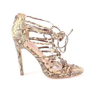 JUSTFAB Stylewatch Dannette snake print strappy lace up heels 6.5