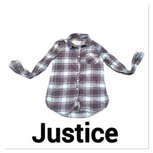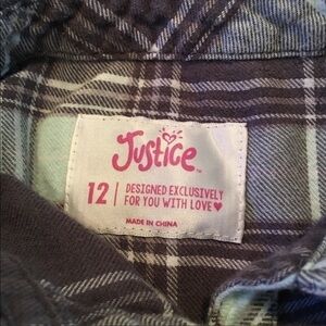 JUSTICE Flannel Mint & Gray Button Up Plaid Shirt 12