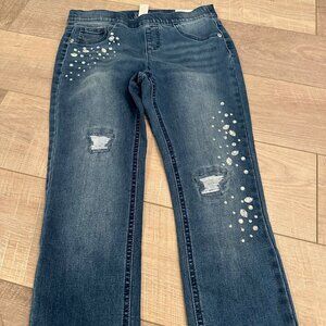 JUSTICE GIRLS PULL ON RHINESTONE DENIM LEGGINGS NEW SIZE 14 MID RISE