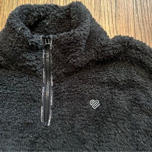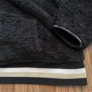 JUSTICE Girls Black Metallic Fuzzy Mock neck Pullover Half Zip Sweater Size L