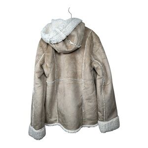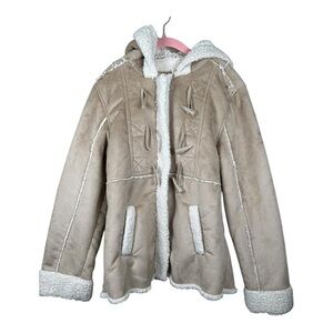 JUSTICE Girls Button-Up/Zip-Up Jacket with Hood & Pockets (Size 14 - Tan) fleece lining Toggle Buttons very warl