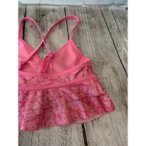 JUSTICE Girl’s Pink Silver Ruffled Tankini Top / Size: 8