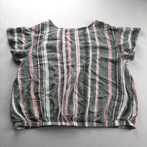 JUSTICE Girls V-Neck Short Sleeve Top Size 12 Green Pink White Gold Stripes Ring