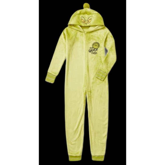JUSTICE Grinch Hooded Union Suit Sleep Pajamas GIRLS SIZE XL 16-18 CHRISTMAS.