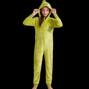 JUSTICE Grinch Hooded Union Suit Sleep Pajamas GIRLS SIZE XL 16-18 CHRISTMAS NEW