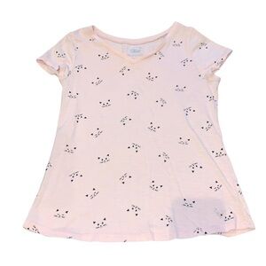 JUSTICE Pink Cat Print V Neck T-shirt size 14