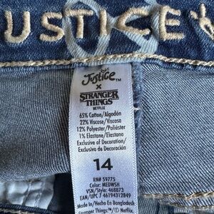 JUSTICE STRANGER THINGS Girls Smiley Face Peace Sign Denim Jeans Size 14