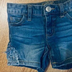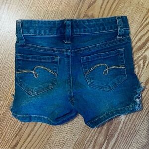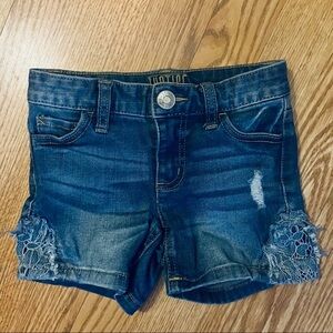 Justice Stretch Denim Shorts With Embroidered Denim & Lace Cut Out Sides Size 8 Slim