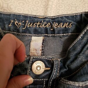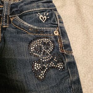 JUSTICE SKULL BLING DISTRESSED JEANS SIZE 7S